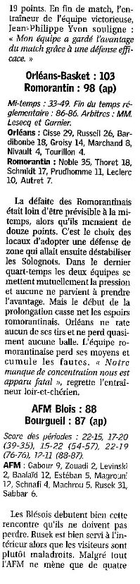 Saison 2004-2005 : Résultats des équipes du Loir-et-Cher engagées dans les Championnats Régionaux lors de la Journée du 7 Novembre 2004