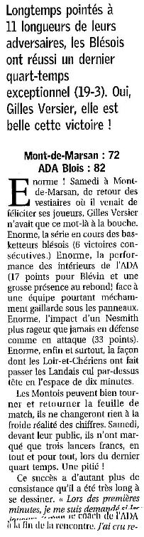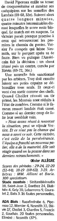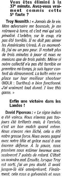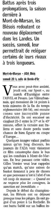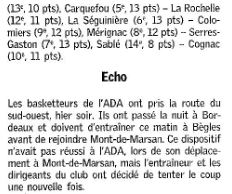 Saison 2004-2005 : Lors de la Journée du 13 Novembre 2004 en Championnat de Nationale Masculine 2, l’ADA Blois bat le Stade Montois