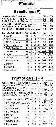 Saison 2004-2005 : Résultats et Classements des Championnats Régionaux après la Journée du 14 Novembre 2004