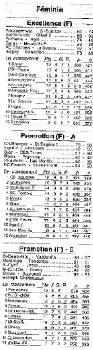 Saison 2004-2005 : Résultats et Classements des Championnats Régionaux après la Journée du 21 Novembre 2004