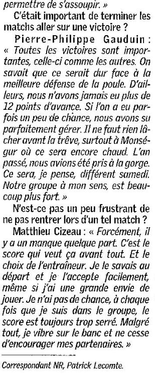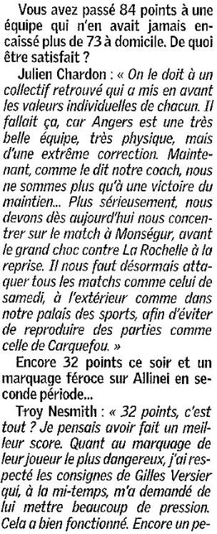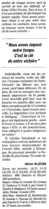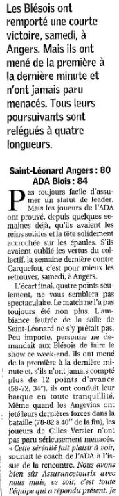 Saison 2004-2005 : Lors de la Journée du 11 Décembre 2004 en Championnat de Nationale Masculine 2, l’ADA Blois bat Saint-Léonard-Angers