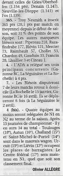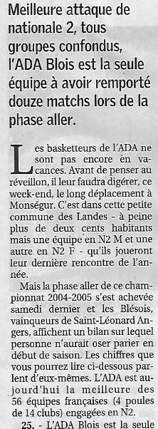 Saison 2004-2005 : Bilan de l’ADA Blois en Championnat de Nationale Masculine 2 à la Fin des Matches « Aller »