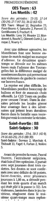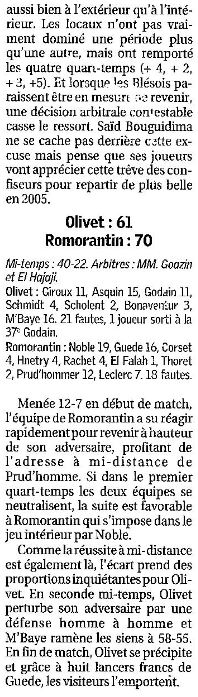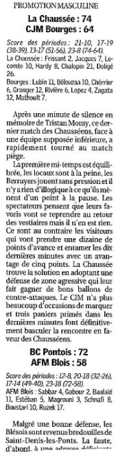 Saison 2004-2005 : Résultats des équipes du Loir et Cher engagées dans les Championnats Régionaux lors de la Journée du 19 Décembre 2004