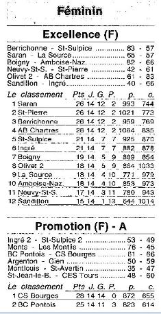« Saison 2004-2005 : Résultats des équipes du Loir et Cher engagées dans les Championnats Régionaux lors de la Journée du 23 Janvier 2005