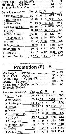 Saison 2004-2005 : Résultats et Classements des Championnats Régionaux après la Journée du 6 Février 2005