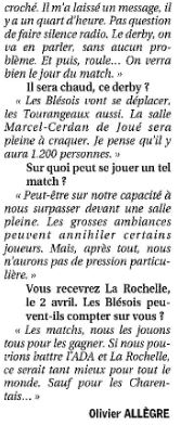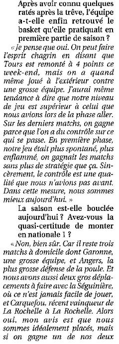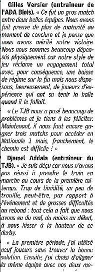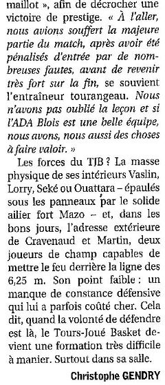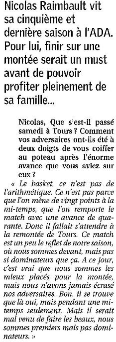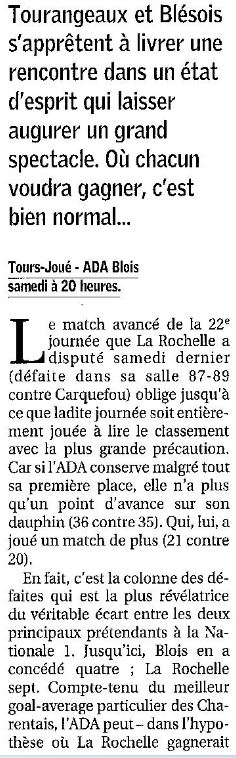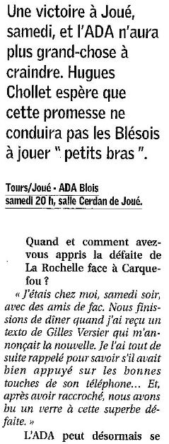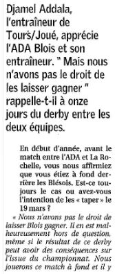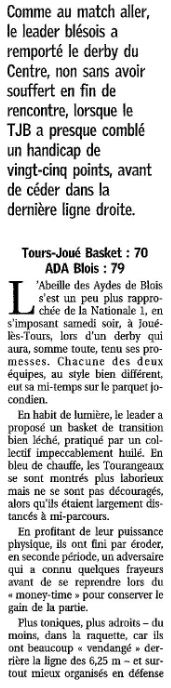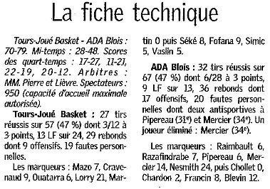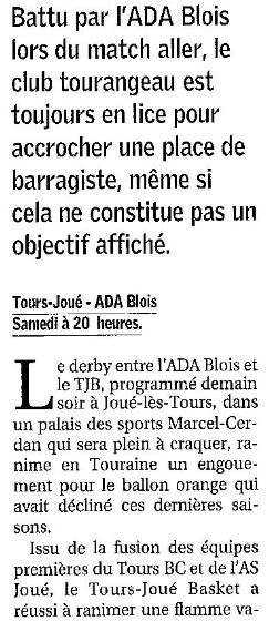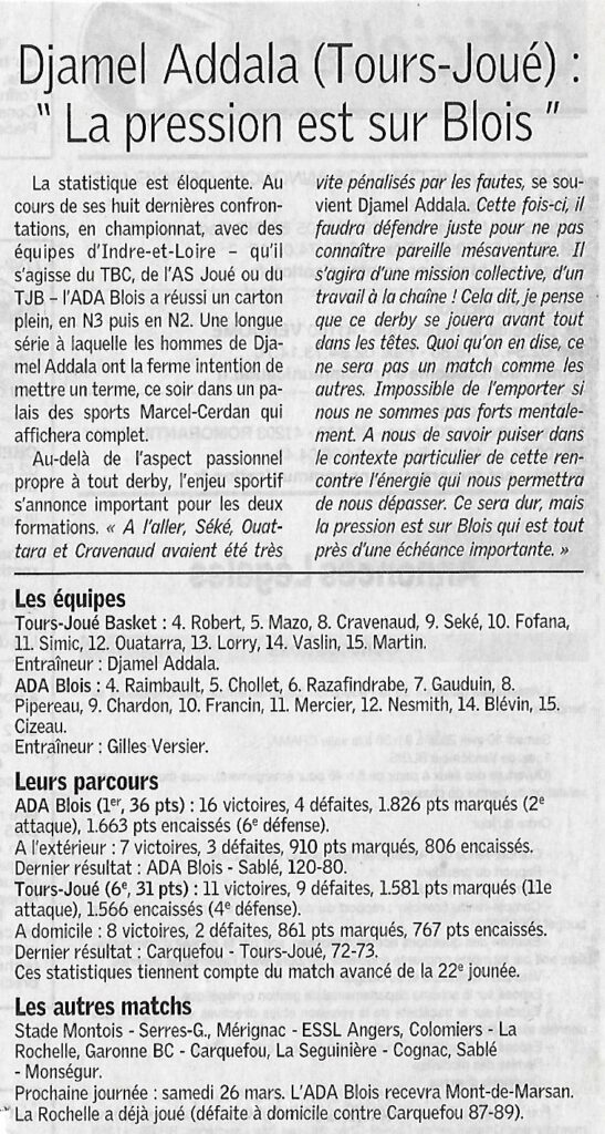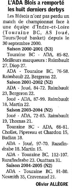 Saison 2004-2005 : Lors de la Journée du 19 Mars 2005 en Championnat de Nationale Masculine 2, l’ADA Blois bat Tours/Joué-lès-Tours