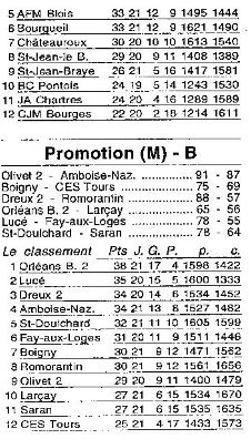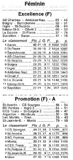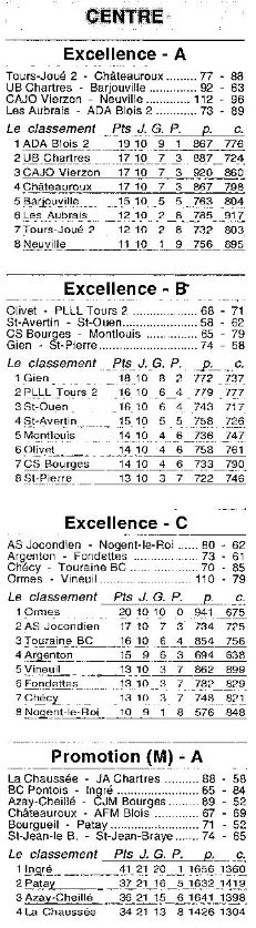 Saison 2004-2005 : Résultats et Classements des Championnats Régionaux après la Journée du 20 Mars 2005