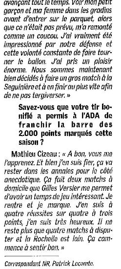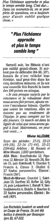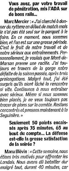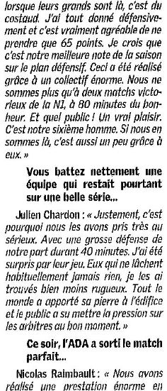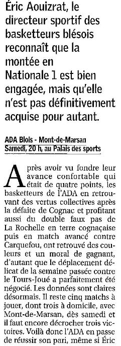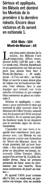 Saison 2004-2005 : Lors de la Journée du 26 Mars 2005 en Championnat de Nationale Masculine 2, l’ADA Blois bat Mont-de-Marsan