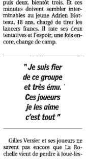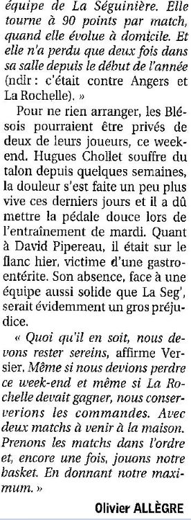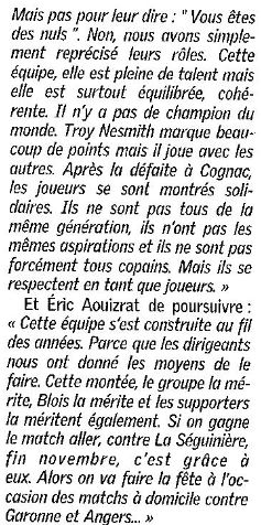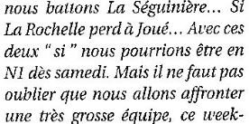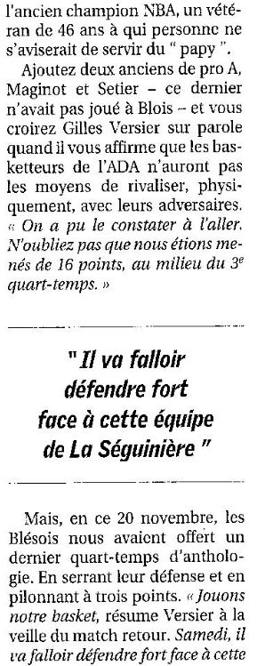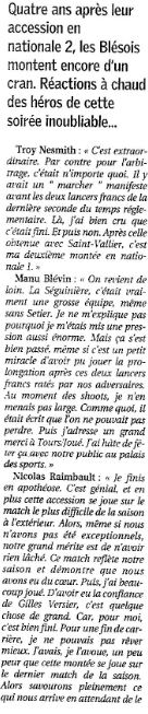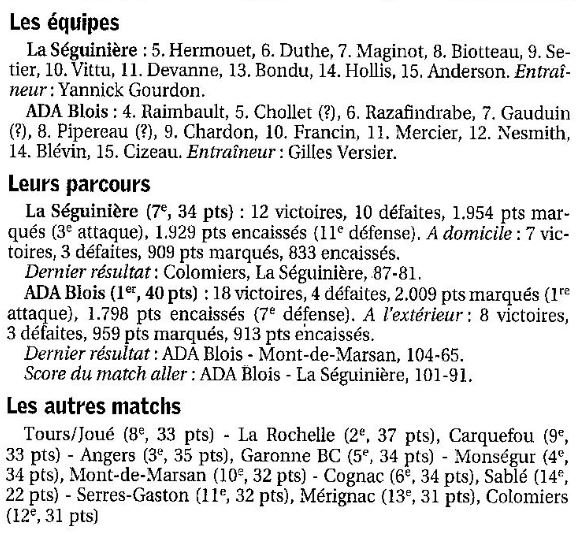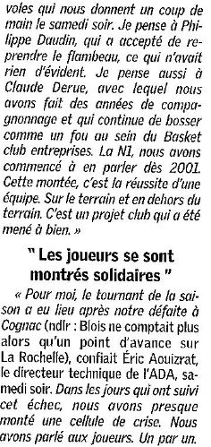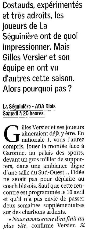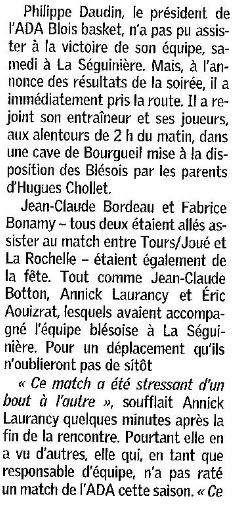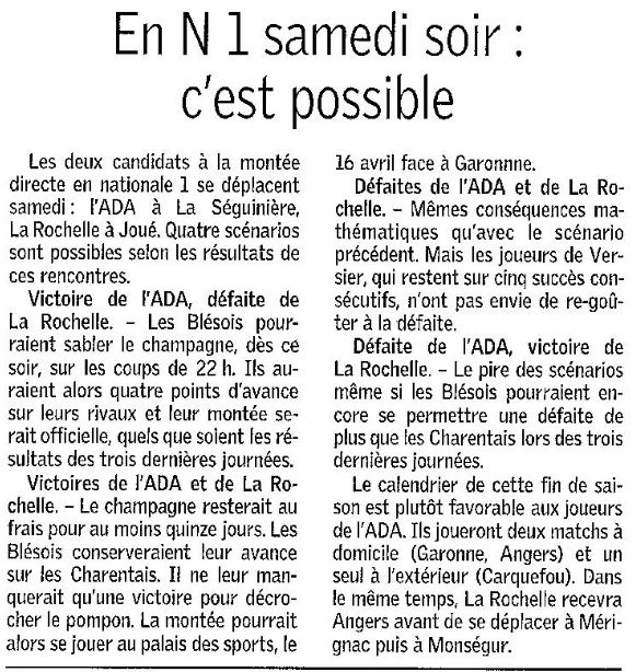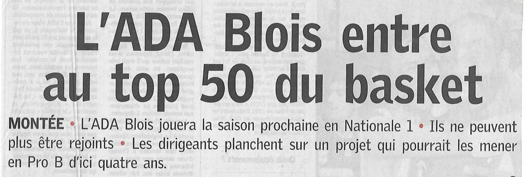 Saison 2004-2005 : Lors de la Journée du 2 Avril 2005 en Championnat de Nationale 2, l’ADA Blois bat La Séguinière et assure sa Montée en Nationale 1