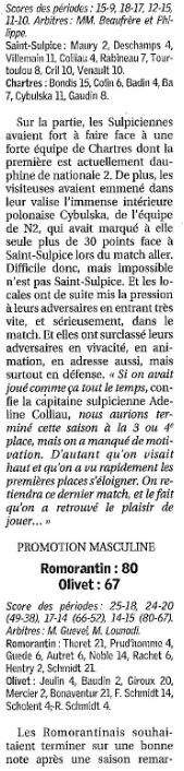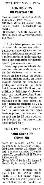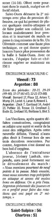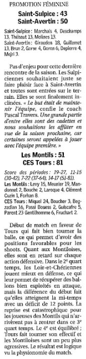Saison 2004-2005 : Résultats des équipes du Loir-et-Cher engagées dans les Championnats Régionaux lors de la Journée du 3 Avril 2005