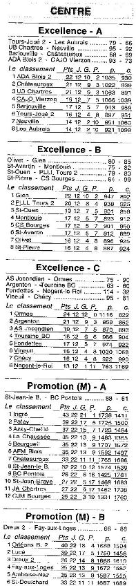 Saison 2004-2005 : Résultats et Classements des Championnats Régionaux après la Journée du 10 Avril 2005
