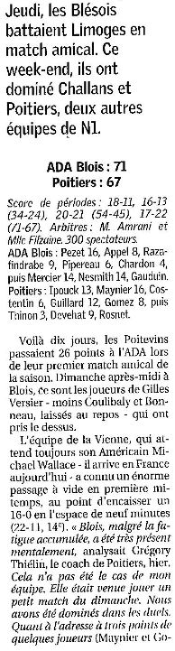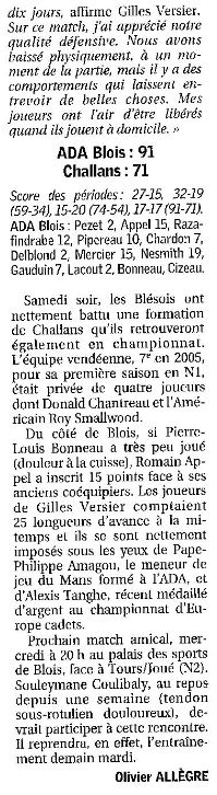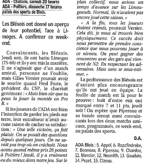 Saison 2005-2006 : L’ADA Blois emmagasine les Succès en Amical