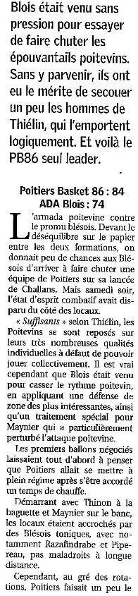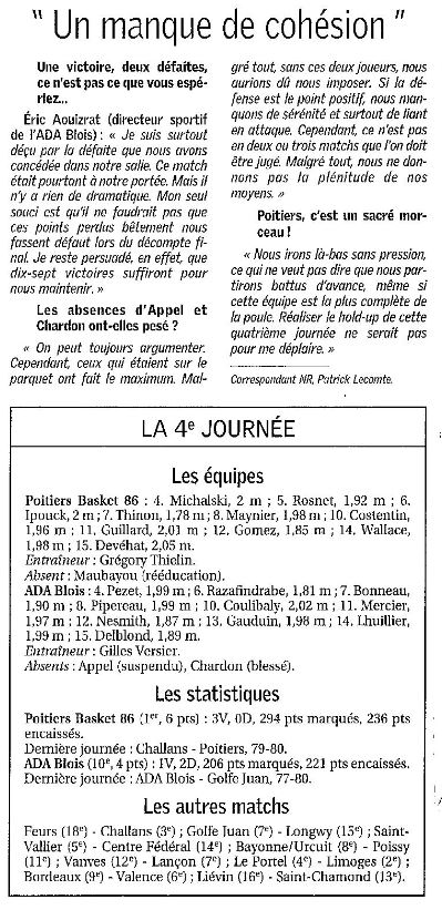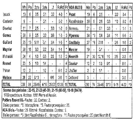 Saison 2005-2006 : Lors de la 4ème Journée du Championnat de Nationale Masculine 1, Poitiers Basket bat l’ADA Blois