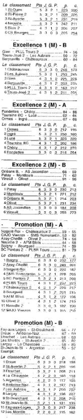 Saison 2005-2006 : Résultats et Classements des Championnats Régionaux après la Journée du 9 octobre 2005