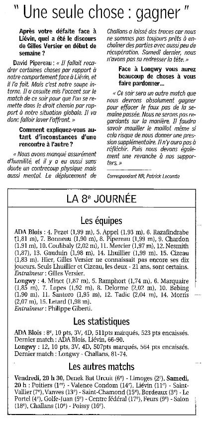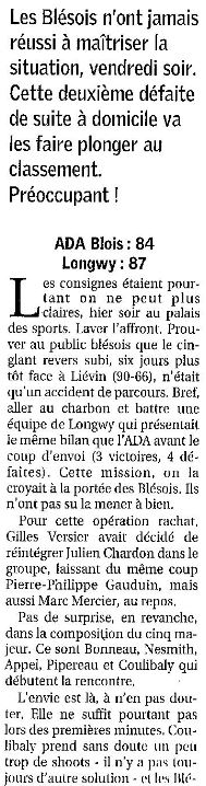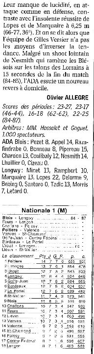 Saison 2005-2006 : Lors de la Journée du 21 Octobre 2005, en Championnat de Nationale Masculine 1, Longwy bat l’ADA Blois