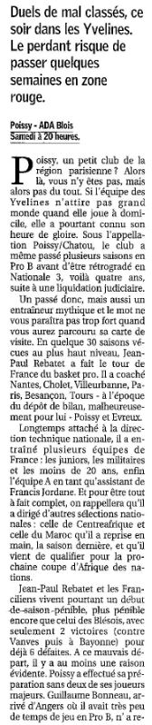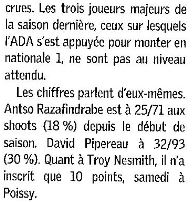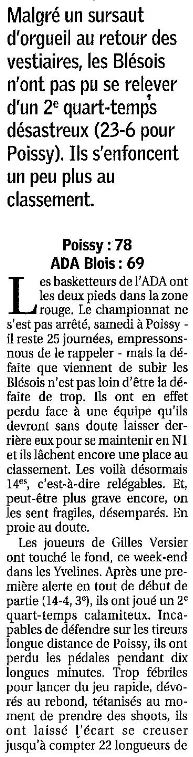Saison 2005-2006 : Lors de la Journée du 29 Octobre 2005, En Championnat de Nationale Masculine 1, Poissy bat l’ADA Blois