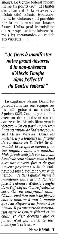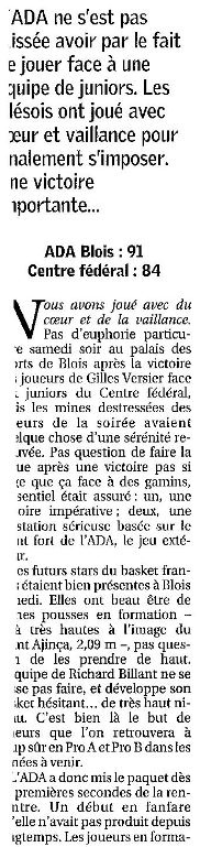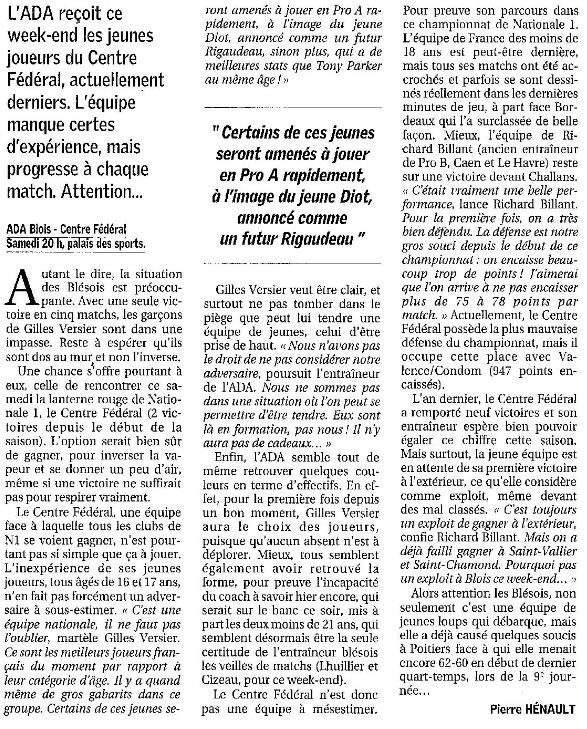 Saison 2005-2006 : Lors de la 12ème Journée de Championnat de Nationale Masculine 1, l’ADA Blois bat le Centre Fédéral