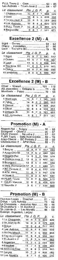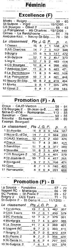 Saison 2005-2006 : Résultats et Classements des Championnats Régionaux après la Journée du 20 Novembre 2005
