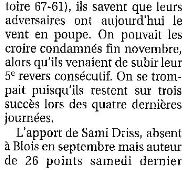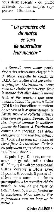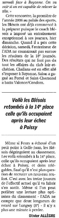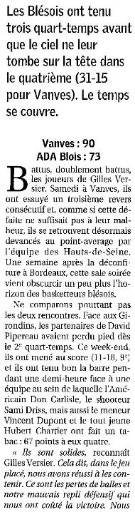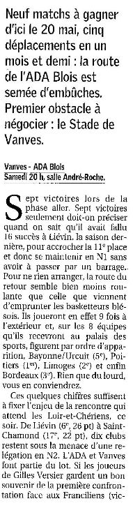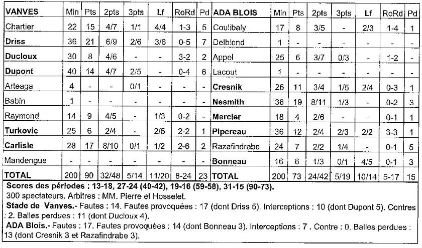 Saison 2005-2006 : Lors de la 18ème Journée du Championnat de Nationale Masculine 1, Vanves bat l’ADA Blois