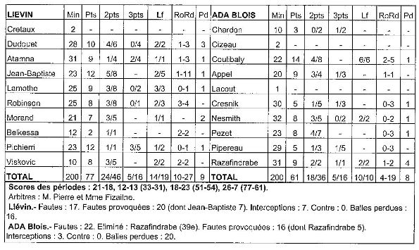 Saison 2005-2006 : Lors de la 24ème Journée du Championnat de Nationale Masculine 1, Liévin bat l’ADA Blois
