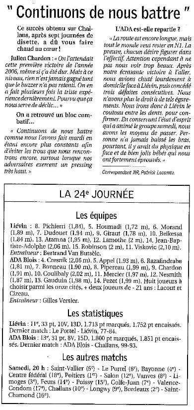 « Saison 2005-2006 : Lors de la 23ème Journée du Championnat de Nationale Masculine 1, l’ADA Blois bat Challans