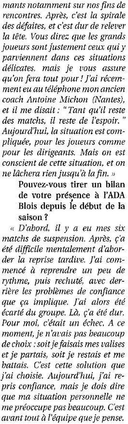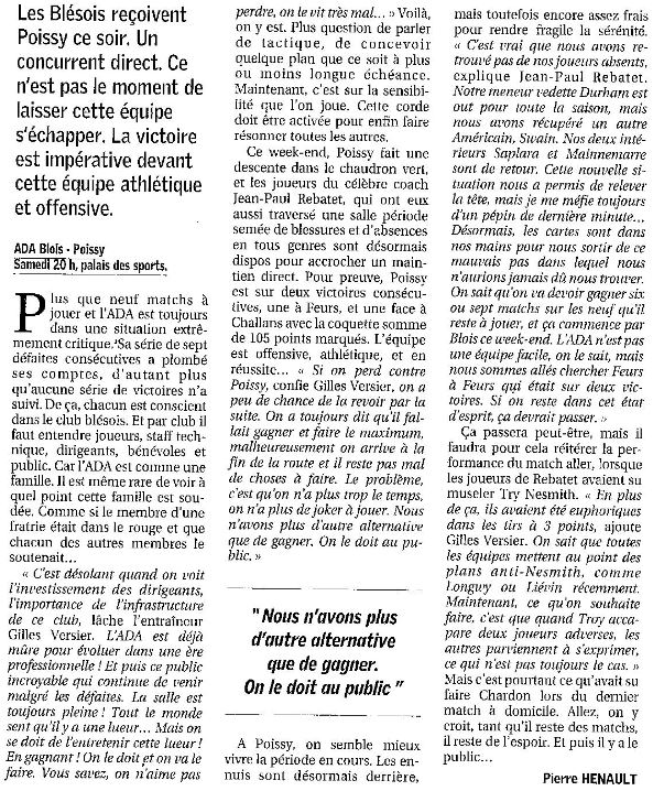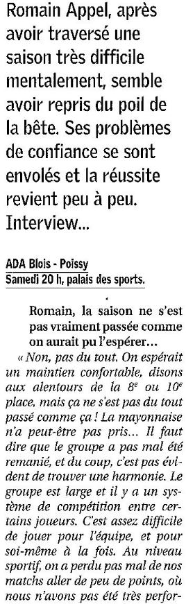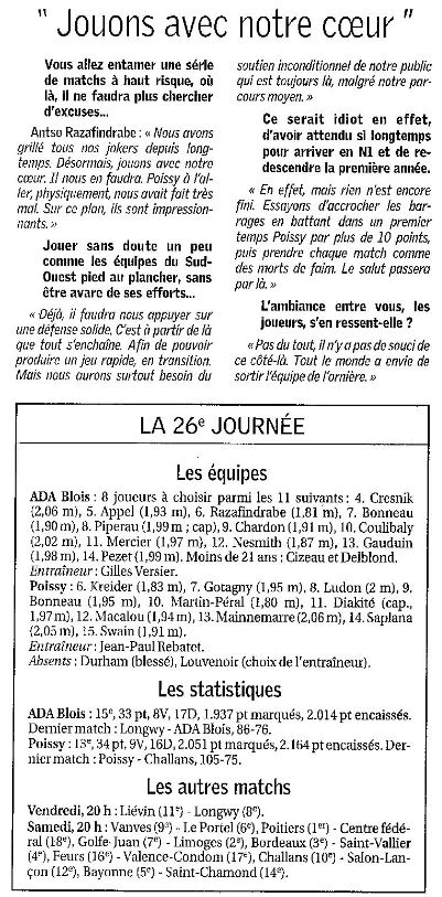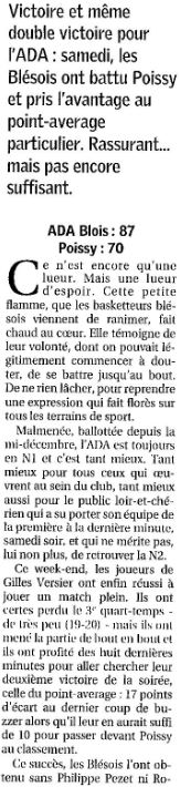 Saison 2005-2006 : Lors de la 26ème Journée du Championnat de Nationale Masculine 1, l’ADA Blois bat Poissy