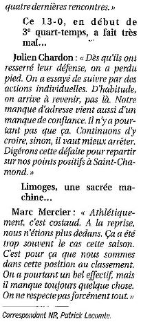 Saison 2005-2006 : Lors de la 30ème Journée du Championnat de Nationale Masculine 1, le CSP Limoges bat l’ADA Blois