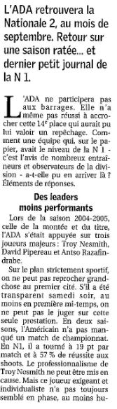 Saison 2005-2006 : Saison Ratée pour l’ADA Blois en Nationale Masculine 1