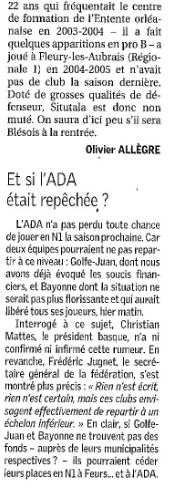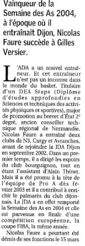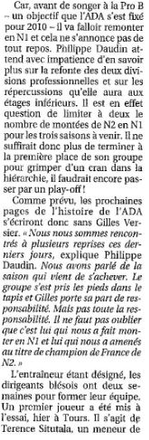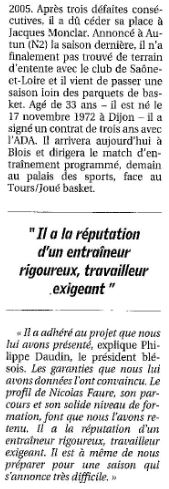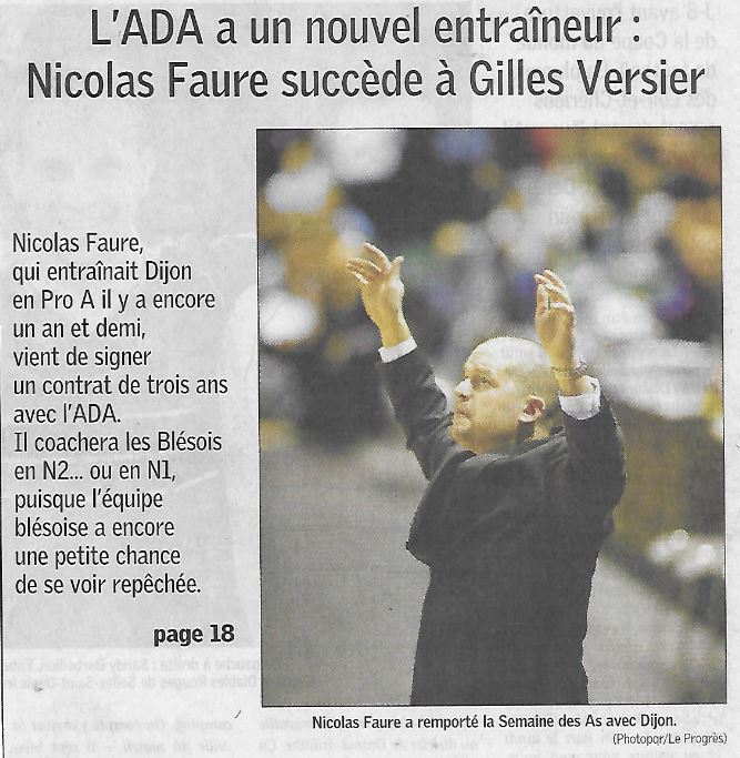Saison 2005-2006 : Nicolas Faure remplace Gilles Versier à l’ADA Blois