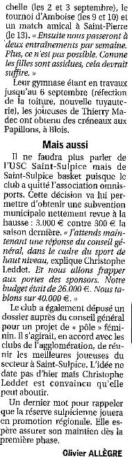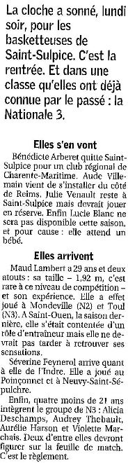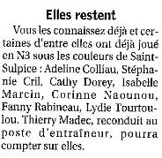 Saison 2006-2007 : Saint-Sulpice retrouve la Nationale 3 Féminine