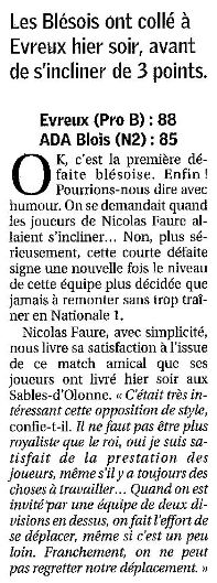 Saison 2006-2007 : En match de Préparation, ALM Evreux (Pro B) bat l’ADA Blois (NM2)