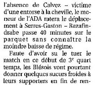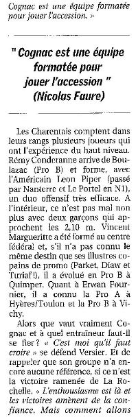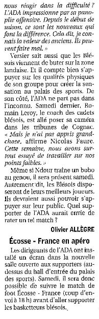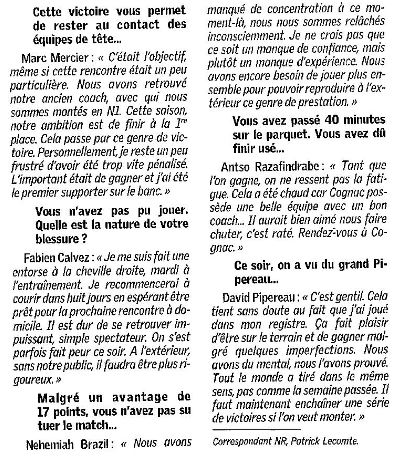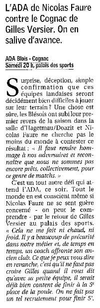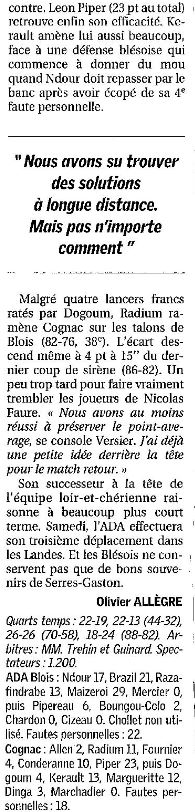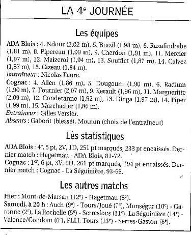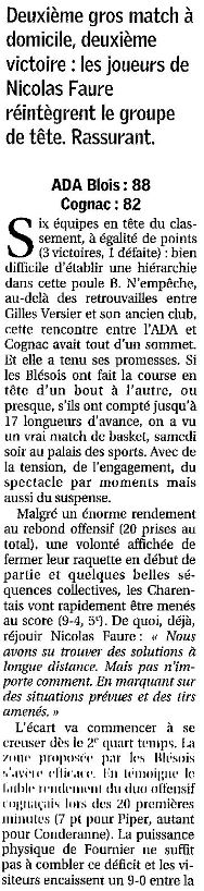 Saison 2006-2007 : En Championnat de Nationale Masculine 2, lors de la Journée du 7 Octobre 2006, l’ADA Blois bat Cognac