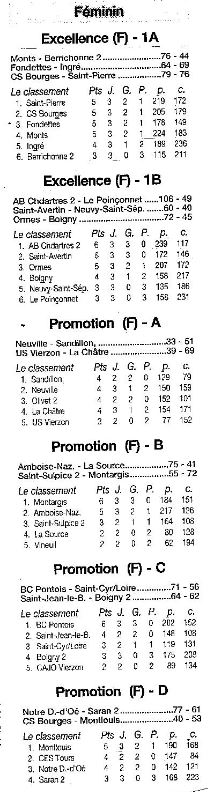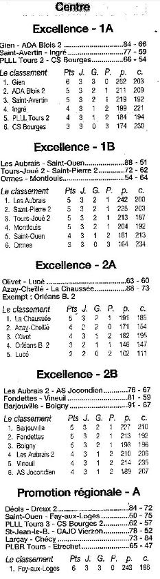 Saison 2006-2007 : Résultats et Classements des Championnats Régionaux après la Journée du 8 Octobre 2006