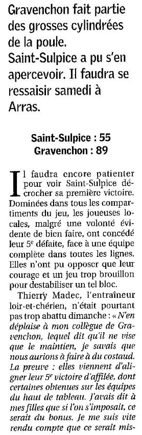 Saison 2006-2007 : En Championnat de Nationale Féminine 3, lors de la Journée du 22 Octobre 2006, Gravenchon bat Saint-Sulpice