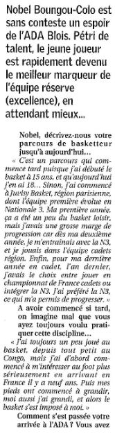 Saison 2006-2007 : Nobel Boungou-Colo un Réel Espoir de l’ADA Blois