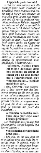 Saison 2006-2007 : En Championnat de Nationale Masculine 2, lors de la Journée du 18 Novembre 2006, l’ADA Blois bat Monségur »