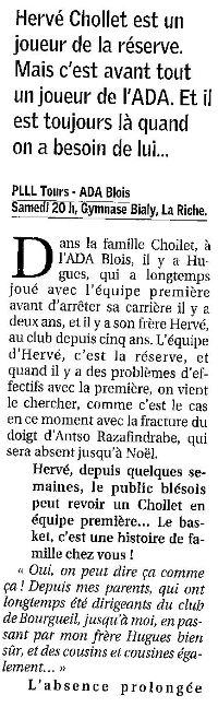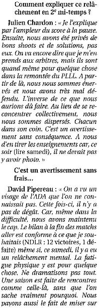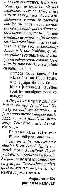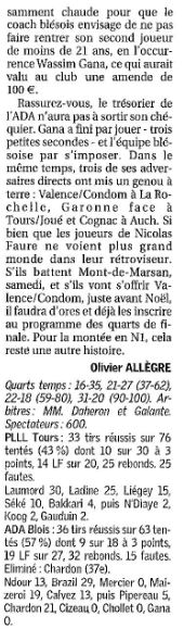 Saison 2006-2007 : En Championnat de Nationale Masculine 2, lors de la Journée du 9 Décembre 2006, l’ADA Blois bat PLLL Tours