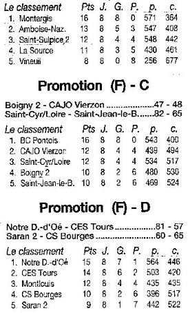 Saison 2006-2007 : Résultats et Classements des Championnats Régionaux après la Journée du 17 décembre 2006