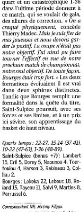 Saison 2006-2007 : En 1/64ème de Finale du Trophée Coupe de France Féminin, Bourges Basket bat Saint-Sulpice