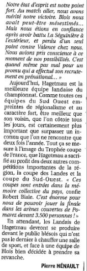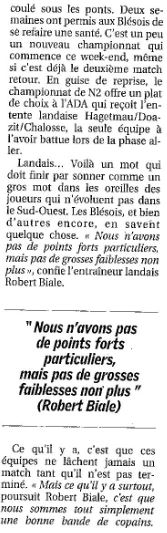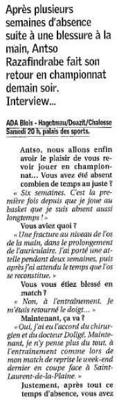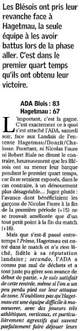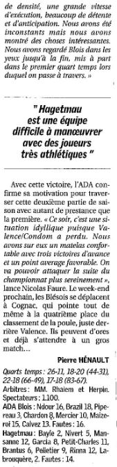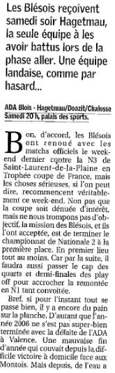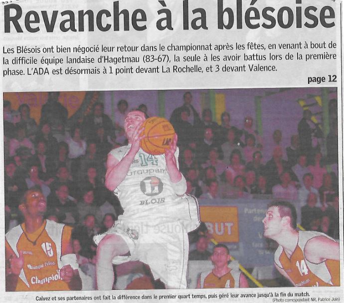 Saison 2006-2007 : En Championnat de Nationale Masculine 2, lors de la Journée du 13 Janvier 2007, l’ADA Blois bat Hagetmau