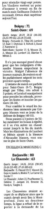 « Saison 2006-2007 : En Championnat de Nationale Féminine 3, lors de la Journée du 28 Janvier 2007, Olivet bat Saint-Sulpice