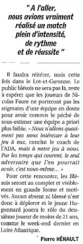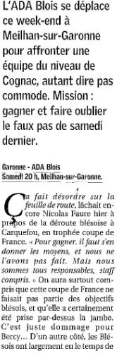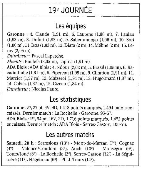 Saison 2006-2007 : En Championnat de Nationale Masculine 2, lors de la Journée du 10 Février 2007, l’ADA Blois bat Garonne