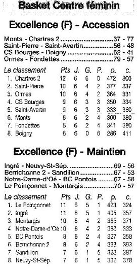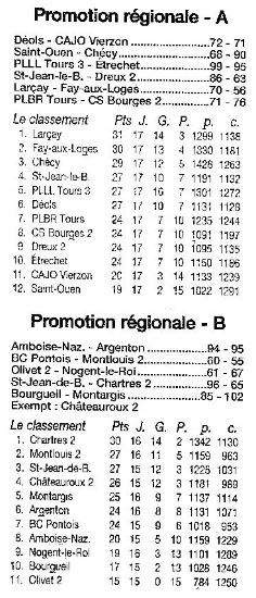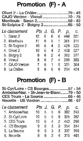 Saison 2006-2007 : Résultats et Classements des équipes du Loir-et-Cher engagées dans les Championnats Régionaux après la Journée du 11 Février 2007