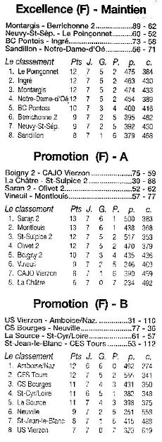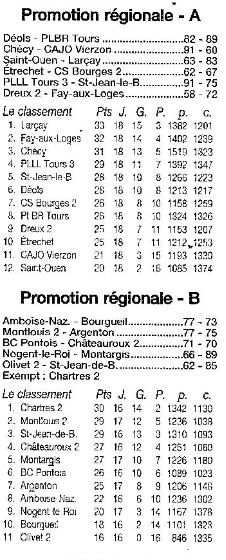 Saison 2006-2007 : Résultats et Classements des équipes du Loir-et-Cher engagées dans les Championnats Régionaux après la Journée du 18 Février 2007