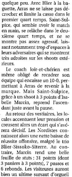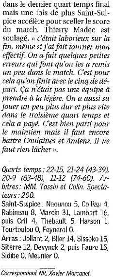 Saison 2006-2007 : En Championnat de Nationale Féminine 3, lors de la Journée du 4 Mars 2007, Saint-Sulpice bat Arras