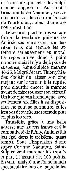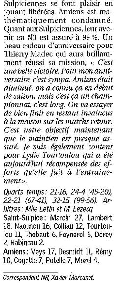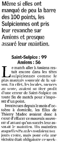 Saison 2006-2007 : En Championnat de Nationale Féminine 3, lors de la Journée du 18 Mars 2007, Saint-Sulpice bat Amiens