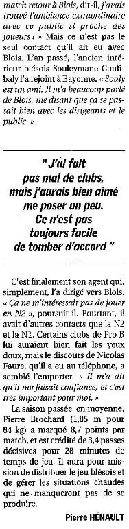 Saison 2007-2008 : Pierre Brochard arrive à l’ADA Blois