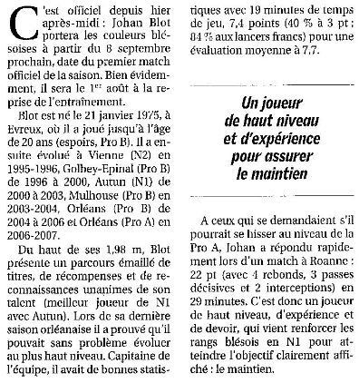 Saison 2007-2008 : Johan Blot arrive à l’ADA Blois
