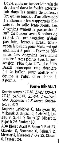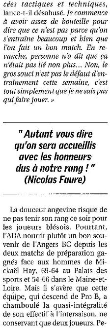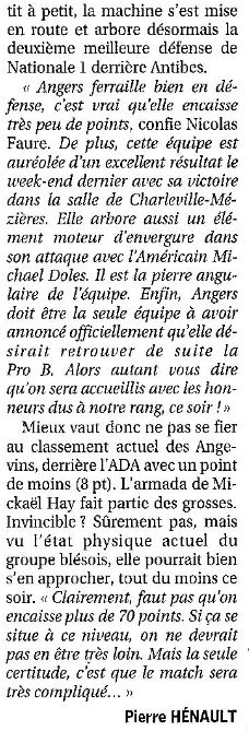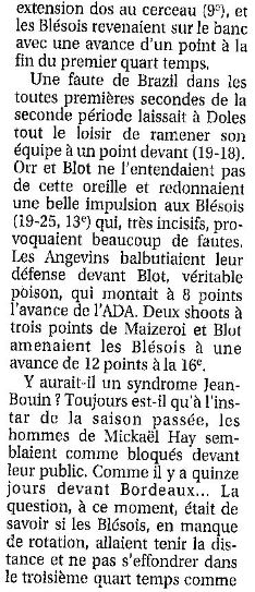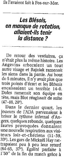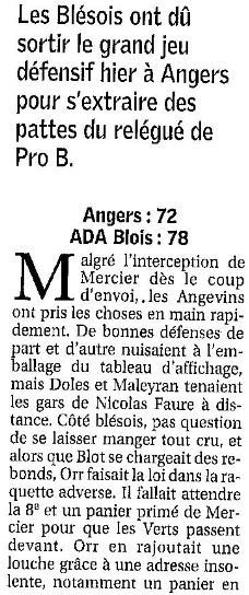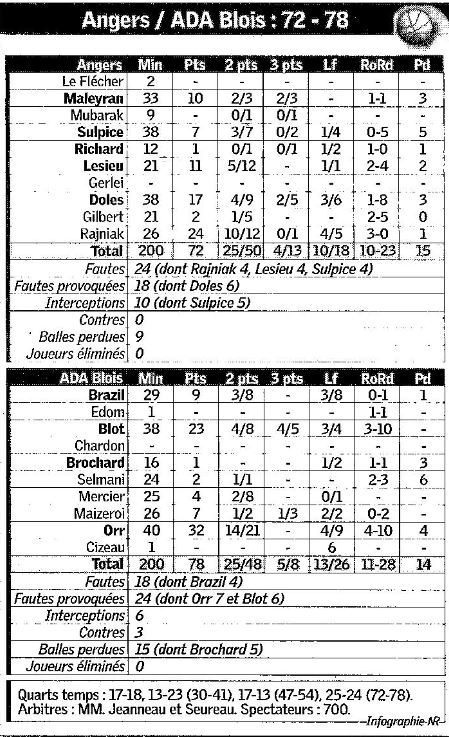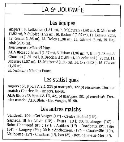Saison 2007-2008 : En Nationale Masculine 1, lors de la Journée du 12 Octobre 2007, l’ADA Blois bat Angers