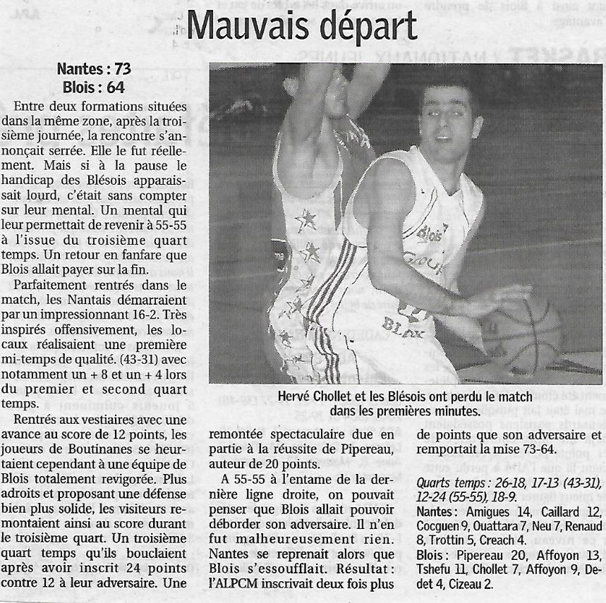 Saison 2007-2008 : En Championnat de Nationale Masculine 3, lors de la Journée du 13 Octobre 2007, l’ALPCM Nantes bat l’ADA Blois (R)